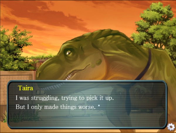 Anywho, Taira-kun is your tie-clad dinosaur pal who you’ve made a bit of a mess with. See, you convinced him to perform and he dropped his precious ukulele. And now you feel bad. So you’re meeting him to go and buy a new instrument so Tairu-kun can strum the worries away of his inevitable extinction.